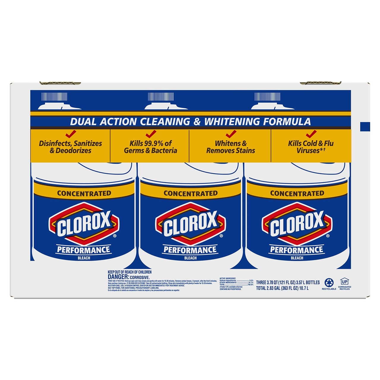 Clorox® Concetrated Regular Bleach offers a clean that has been trusted for generations, now in a concentrated formula that helps you clean, whiten and disinfect with less.