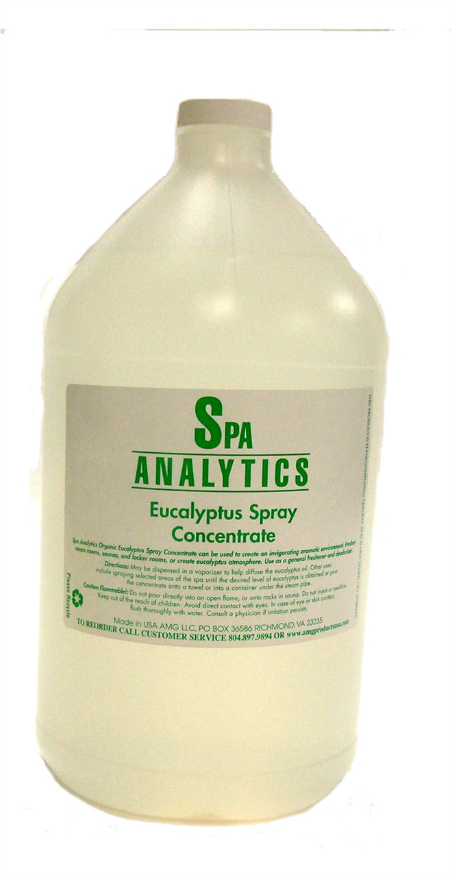 Spa Analytics Eucalyptus Spray Concentrate contains more than 25% PURE EUCALYPTUS OIL, extracted from the Eucalyptus Globulus tree, which can be used to create an invigorating aromatic environment. Eucalyptus has long been used in Australia as a household remedy for a variety of respiratory ailments.