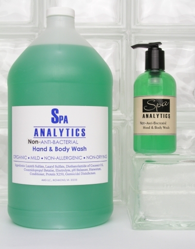 Spa Analytics Non-Antibacterial Hand & Body Wash is actually three products in one. Made with Coconut Oil and Aloe Vera, this organic surfactant works great cleansing away dirt whilie hands and body will not be stripped of essential body oils. Our Organic Hand & Body Washes are so mild and non-irritating, that they work great as a shampoo as well. Perfect for frequent washings, and available in blends of Almond, Herbal, Mango and Cherry extracts. Also available in 4:1 Concentrates.