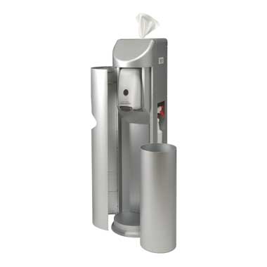 The Cleaning Station is THE ONLY dispenser on the market that offers you the flexibility of choosing a center pull moist towelette or dry towel. The cabinet keeps your wet towels moist and your dry towels out of sight.